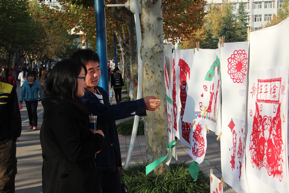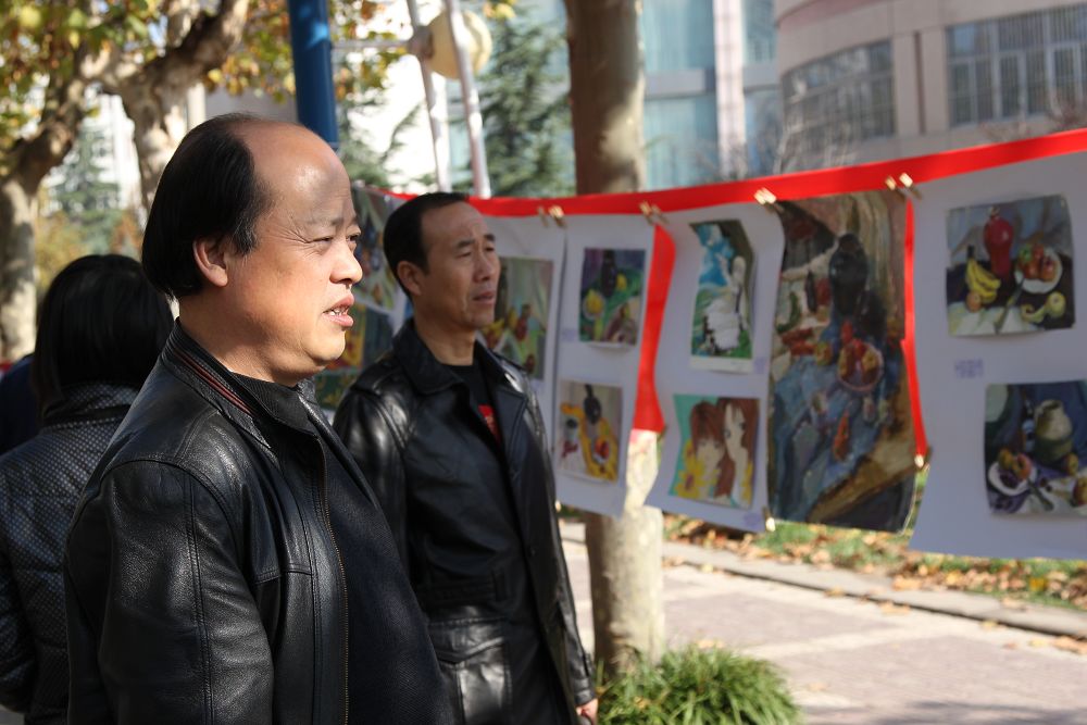 11月8日,我院成才大道两侧挂满书画和工艺作品,为秋日的校园抹上一笔浓厚的艺术氛围。