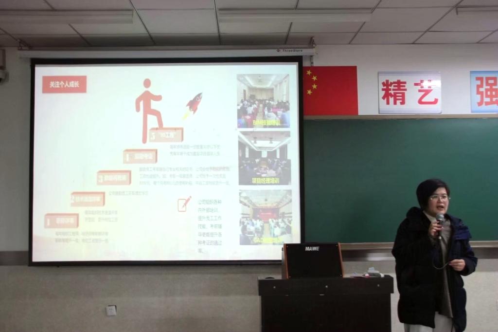 11月28日,材料工程学院邀请中国核工业华兴建设有限公司(以下简称中核华兴)钢结构管理部党委副书记杨萍做客文化大讲堂。材料学院2020级近150名学生聆听了本次报告。据悉,中核华兴现有我校18名校友,均担任技术人员和工程师。