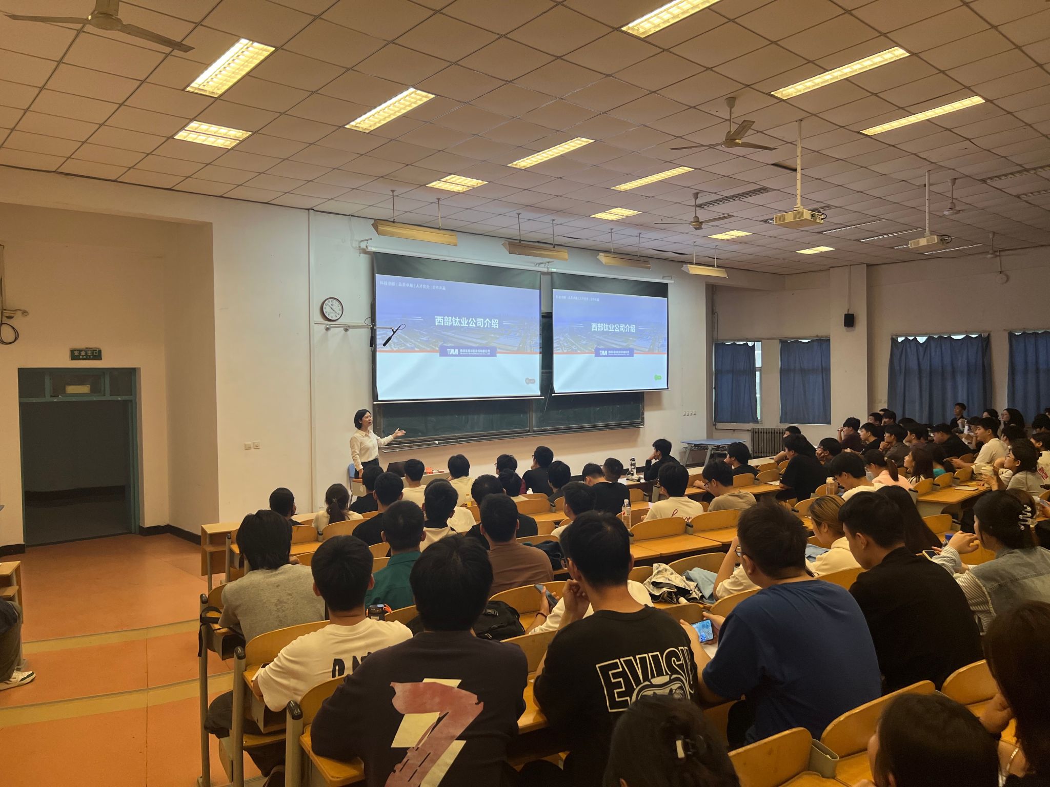 9月17日,材料工程学院联合西部钛业有限责任公司在崇文西楼301教室成功举办“企业大讲堂”活动。本次活动由材料工程学院学工办主任王昊主持,材料工程学院百余名学生到场聆听。西部钛业有限责任公司人力资源总监任部长作为主讲嘉宾,通过理论讲解与案例分析相结合的方式,为师生们带来了一场兼具专业深度与实践价值的精彩讲座。本次企业大讲堂活动在参与师生的高度期待中拉开帷幕。学工办主任王昊简要介绍了活动的背景及目的,强调了校企合作对于材料类专业学生培养的重要性。西部钛业有限责任公司作为西部金属材料股份有限公司的控股子公司,在钛材料领域具有显著行业地位和专业技术优势。任部长系统阐述了西部钛业在稀有金属材料研发、生产方面的技术实力,通过可视化数据展示了企业在高端钛合金材料、航空航天材料等领域的创新成果。针对学生关注的职业发展路径,任部长重点剖析了材料研发、生产工艺控制、产品质量检测等核心岗位的能力要求,详细阐释了西部钛业“科学严谨、创新务实”的企业文化内核。他特别介绍了公司特色培养体系,为学生们勾勒出清晰的职业发展通道。