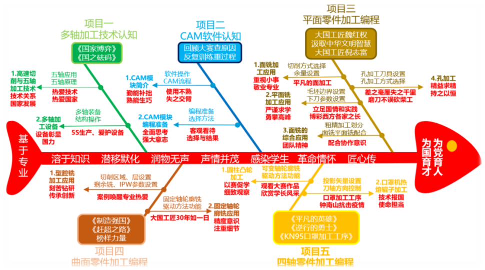 图6 《高速切削与五轴加工》课程思政元素鱼骨图