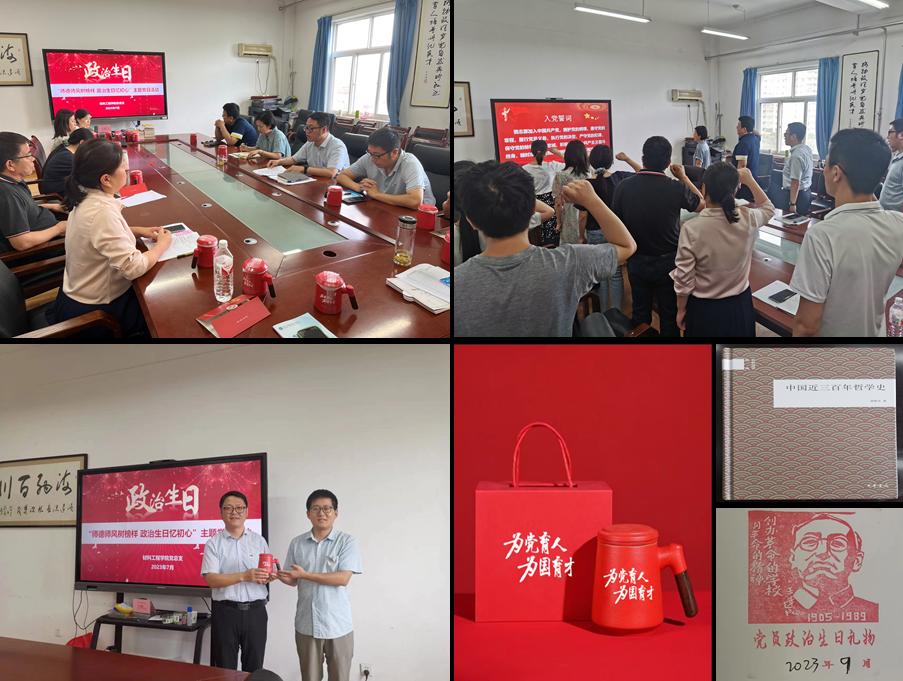 为进一步加强师德师风建设,深化教师师德修养,规范教师从教行为,提高教师的思想政治素质和职业道德水平,2023年7月7日,在行知E楼511会议室举行了“师德师风树榜样 政治生日忆初心”主题党日活动,过集体政治生日的22名党员及部分教师代表参加,会议由材料工程学院党总支书记郝平主持。