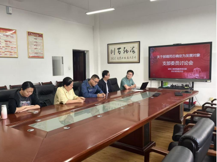 近日,材料工程学院教师党支部委员会在学院党员活动室召开专题会议,研究讨论并确定郝璐同志为入党发展对象相关事宜。会议由党支部书记 侯延升同志主持,支部委员会委员参加会议。