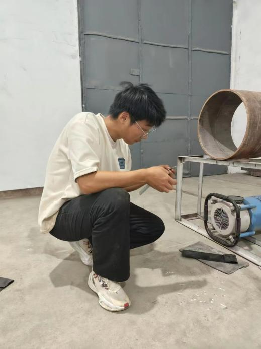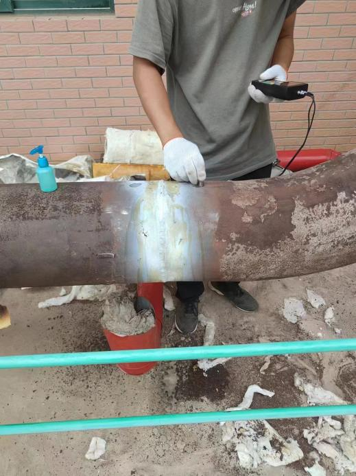 图1学生吕栋在进行锅筒焊缝磁粉检测