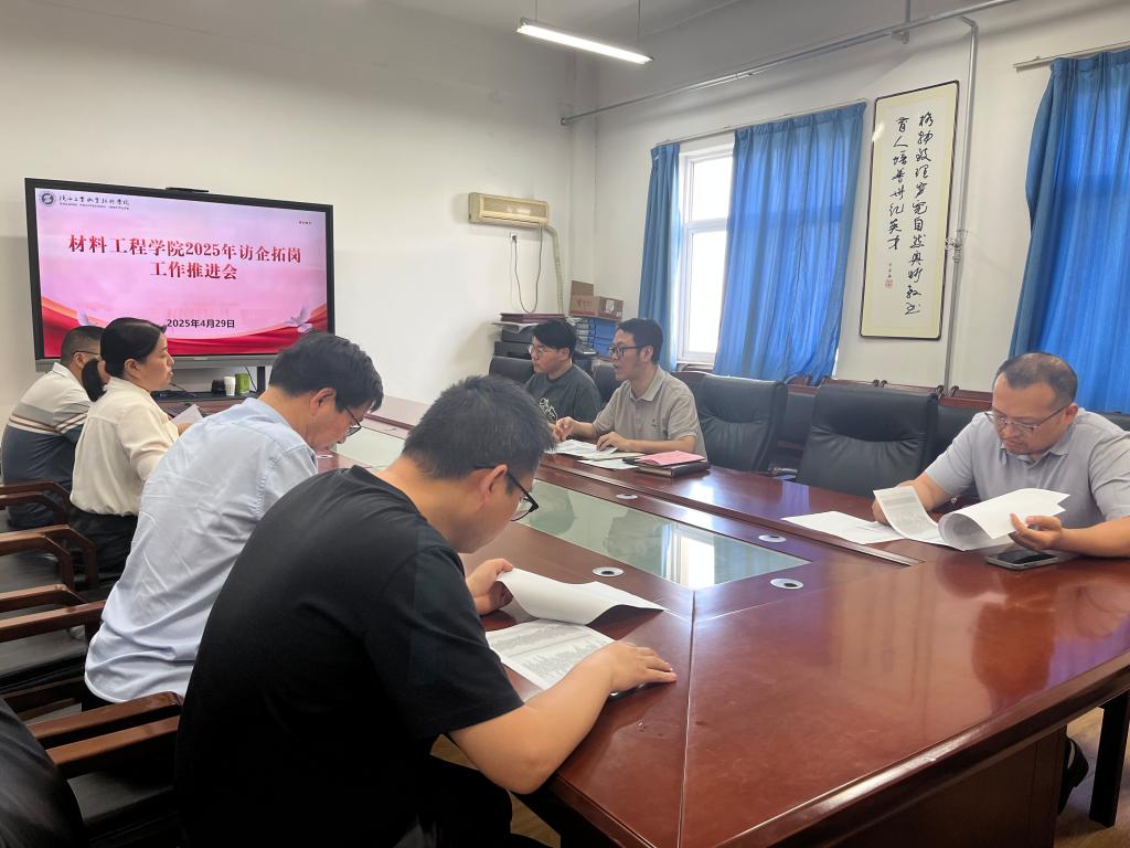 为深化产教融合,拓宽就业渠道,2025年4月29日材料学院在行知E楼会议室召开“访企拓岗”推进会。学院党总支书记郝平,学工办主任王昊、以及各教研室主任共同参会,为毕业生的就业工作出谋划策。