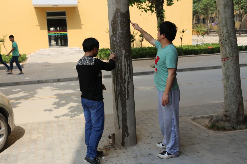 当天上午9时—12时,近百名同学参加了“我爱我家 清洁校园”文明大行动活动,在辅导员老师的带领下,学生们用铲子、刷子、钢丝球、抹布等多种工具对各种小广告进行了清理,同学们即使举得胳膊酸痛,站到腿发麻,衣服上沾满了脏东西,却没有一个人抱怨,看着清理后干净的墙壁和整洁校园,他们疲惫的脸上流露出自豪和满足感。