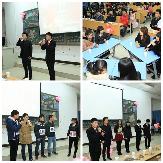 2014年12月26日,材料工程学院与工商管理学院“喜迎2015”联欢晚会在崇文西楼302教室举行,工商学院党总支书记孙继龙、材料学院党总支副书记郭旭华以及学工办老师、学生等300余人参加了晚会。
