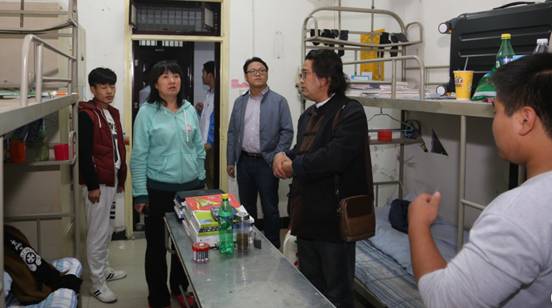 为敦促我院学生养成良好的安全卫生习惯,提高学生的文明素养和综合素质,改善我院学生宿舍安全卫生文明状况,给同学们创造一个干净、安全、舒适、卫生、文明的住宿环境,10月13日晚,由材料工程学院党总支副书记郭旭华、学工办主任郝平带队,与全体辅导员及部分学生干部一起检查了各年级的男女生宿舍,并在检查卫生的同时与同学进行了交流。