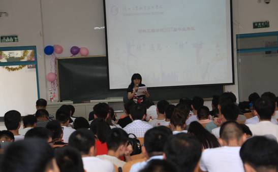 6月27日上午,材料工程学院2017届毕业生毕业典礼在崇文西楼202举行。该院领导、教师代表、班主任、辅导员、2017届毕业生代表近200人参加了典礼。典礼上播放了该院学生会为2016届毕业生精心制作的视频短片《不忘初心,砥砺前行》,引起了师生的强烈共鸣和深切感动。材料学院党总支书记、院长罗怀晓在对2017届毕业生顺利完成学业的学习表示祝贺,代表学院对毕业生们提出了殷切期盼,希望大家在今后的人生道路上时时志存高远,怀抱理想,脚踏实地,勇于实践,并亲自为毕业生代表颁发毕业证书。材料学院党总支副书记郭旭华给毕业生强调了离校手续办理流程及离校期间纪律、安全等注意事项。班主任代表弋楠表达了对毕业生的热切期盼和美好祝愿,同时还提出了对毕业生在未来人生中的几点建议。在校生代表杨超在发言中对学长们送上自己美好的祝愿。毕业生代表雷帅回顾了三年的大学生活,并由衷地感谢学校的精心培育和老师的关心与帮助,表示要牢记学校教诲,踏入工作岗位后要努力工作,为祖国建设事业的发展贡献力量。会后,材料工程学院还分别组织了2017届毕业生学生干部座谈会,同学们和老师门进行了亲切交流,讲述了自己在顶岗实习期间的感受、对大学时光的不舍和对母校的感恩之情。