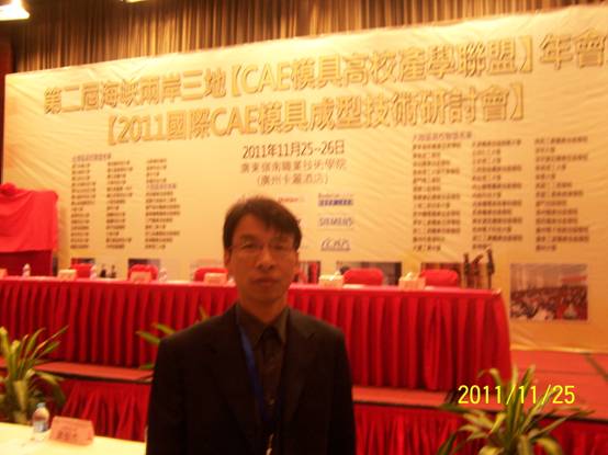 第二届海峡两岸三地CAE模具高校产学联盟年会暨2011国际CAE模具成型技术研讨会于2011年11月25日至26日在广州举行。主办单位:CAE模具高校产学联盟,协办单位:广东岭南职业技术学院、广州模具协会、广东省模具协会,承办单位:台湾区电脑辅助成型技术交流协会、科盛科技、开思网。参加会议的有海峡两岸三地高校四十多家,企业及研究机构一百多家,参会人数三百多人。材料工程学院淮遵科参加了这次会议。