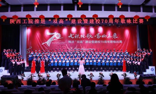 为庆祝我校建校70周年,进一步推进“双高”建设,11月11日晚,由学校宣传部、工会、学工部、美育部承办的“七秩弦歌 唱响未来”歌咏比赛在明德堂大礼堂举行,材料工程学院师生组合共150人参加歌咏比赛,材料成型与控制技术专业1901班王静雯同学担任合唱指挥,白忠丹、李振宏两名同学领唱,李家辉、张婷、周志勇、李梦欣四名同学朗诵。本次比赛选唱了《陕西工业职业技术学院校歌》和《歌唱祖国》两首歌曲。比赛现场激情澎湃,歌声嘹亮,唱出了材料工程学院的蓬勃朝气,洋溢着高涨的比赛激情。