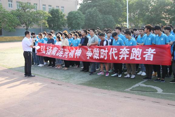 学生代表质检2001班张婷做了《以南泥湾精神砥砺优良品格》为题的国旗下发言,她从大学生的角度以党史为线索,讲述了南泥湾精神形成的过程,并号召广大同学要传承自力更生、艰苦奋斗的的优良传统,磨练出坚韧不拔的意志,铸造顽强性格和奋发向上的精神。随后,质检1902班张家兴在国旗下演唱歌曲《南泥湾》,热情歌颂了开荒生产的八路军战士南泥湾改造成美丽的江南”的生动实践