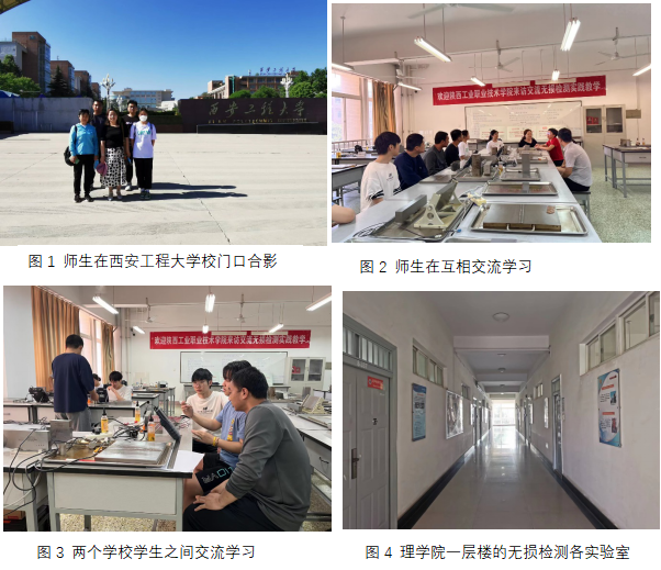 2022年6月16日,我院教师李红莉、姚永红带领全国大学生无损检测(超声)技能大赛参赛选手同超伟、史虎、李欢同学去大赛承办单位“西安工程大学“观摩学习。
