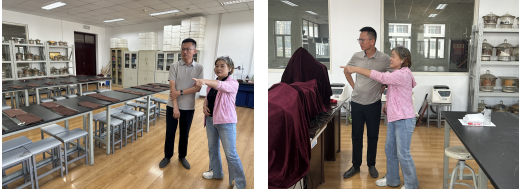 图1.2为燕样样老师与专业带头人张保林研讨金相实验的改进方法